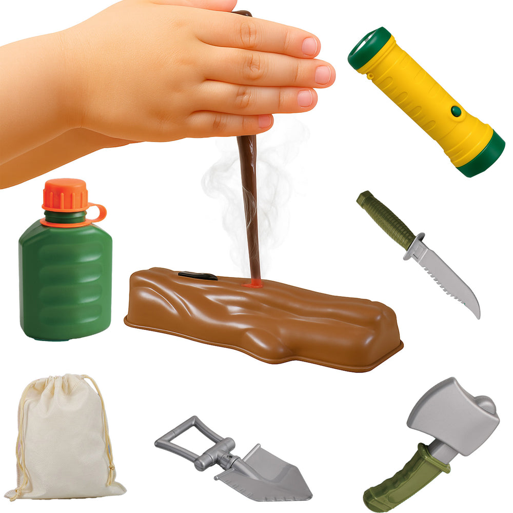 Kids camping toys essentials - toy friction fire starting and explorer kit