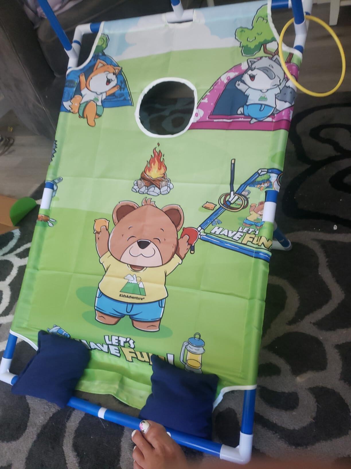 • Full size game set for kids 6-10: Measured 32” x 21.5”, this bean bag tossing game set is suitable for kids between 6 – 10 years old. It has passed the ASTM F963-17 and HR4040 tests. A safe toy set for the kids.